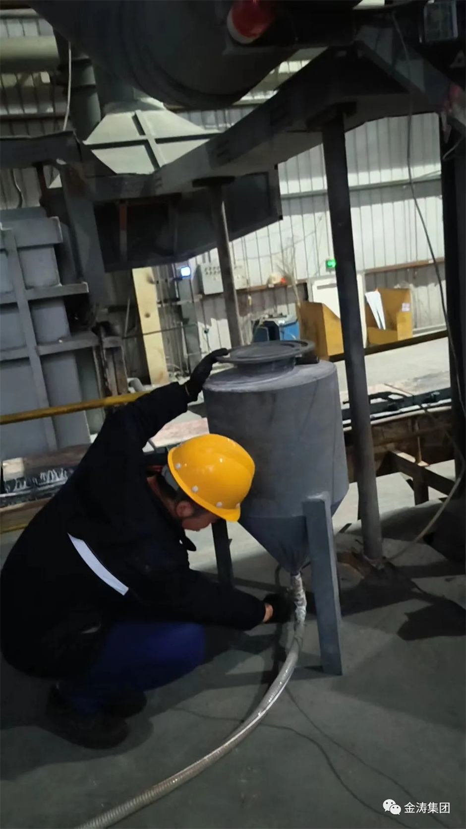 2023年8月,熔煉噴粉精煉機(jī)出現(xiàn)故障,經(jīng)設(shè)備維修人員檢測(cè)后,確認(rèn)噴粉精煉機(jī)電機(jī)損壞無法修復(fù),熔煉主管宋干衛(wèi)憑借豐富的工作經(jīng)驗(yàn)和平時(shí)工作中對(duì)噴粉精煉機(jī)結(jié)構(gòu)的了解,利用空閑時(shí)間自主設(shè)計(jì)了噴粉機(jī)圖紙并上報(bào)分廠,經(jīng)分廠廠長(zhǎng)同意后,將圖紙報(bào)送至集團(tuán)旗下?lián)P豐機(jī)械制造有限公司,制作了配套的容器罐。分廠內(nèi)部設(shè)備人員攻堅(jiān)克難尋找其他配件,自主制作安裝了新的噴粉精煉機(jī)。于10月27日投入測(cè)試使用,經(jīng)過兩個(gè)月的驗(yàn)證,自制噴粉精煉機(jī)使用效果較好,使用過程中未出現(xiàn)任何故障。崗位操作員對(duì)自制噴粉精煉機(jī)使用效果非常滿意。分廠廠長(zhǎng)張建波立即響應(yīng)崗位操作員的建議,增加自制噴粉精煉機(jī)的數(shù)量。
